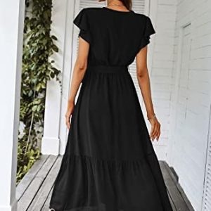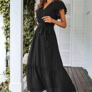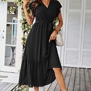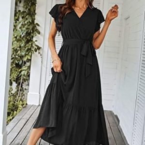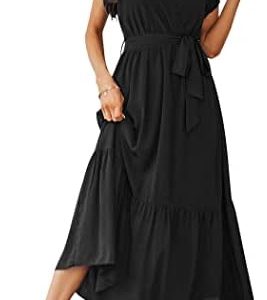 PRETTYGARDEN Women’s 2024 Floral Boho Dress Wrap V Neck Short Sleeve Belted Ruffle Hem A-Line Flowy Maxi Dresses