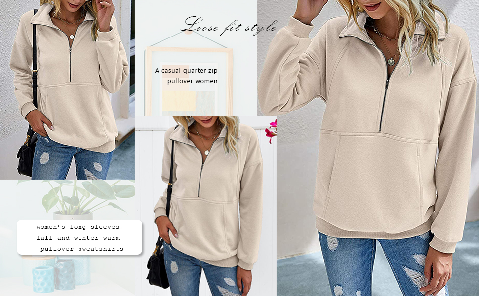 A casual quarter zip pullover women perfectly pair with classic jeans to give you a versatile look fashion;