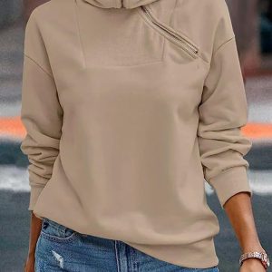 Womens Zipper Sweatshirt Turtleneck Long Sleeve Pullover Casual Loose Sweatshirts Top T Shirts
