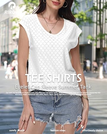 RIROW Womens Tank Tops Eyelet Embroidary Sleeveless Spaghetti Strap Casual Boho Cami 2024 New S-3XL
