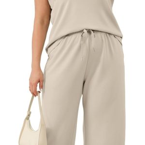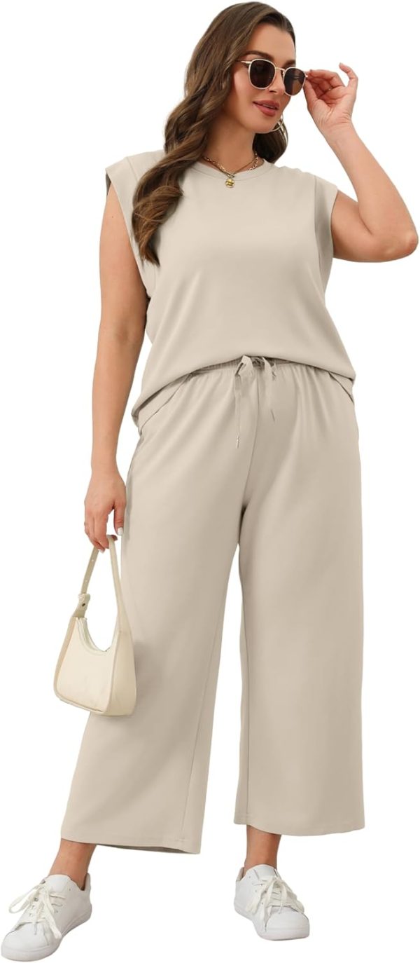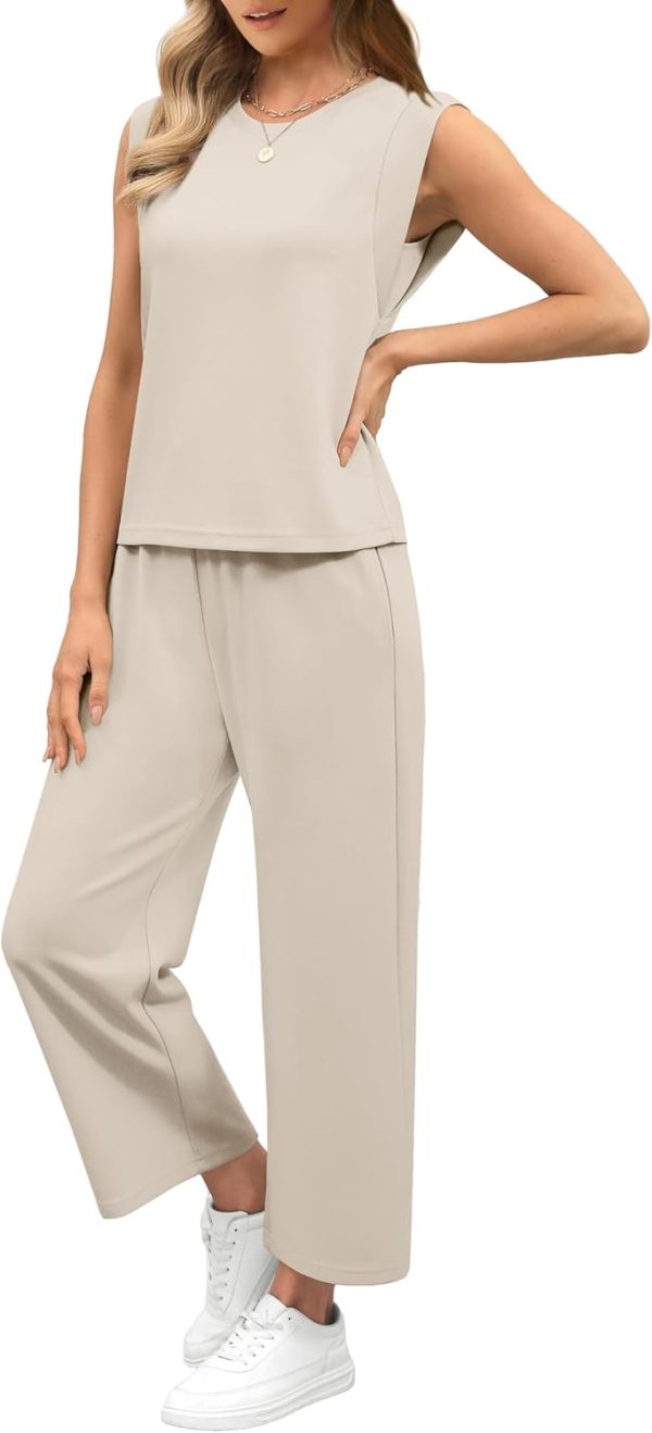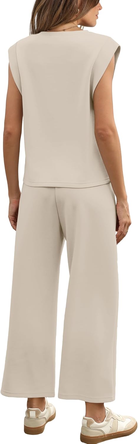 SAMPEEL 2 Piece Sets Women Outfits Summer Lounge Sets Travel Vacation Clothing Sleeveless Top Wide Leg Crop Pants