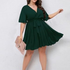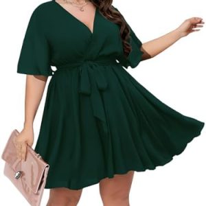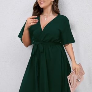 SCOMCHIC Women’s Plus Size Summer Dresses Short Sleeve Wrap V Neck A Line Skater Mini Short Dress XL-4XL