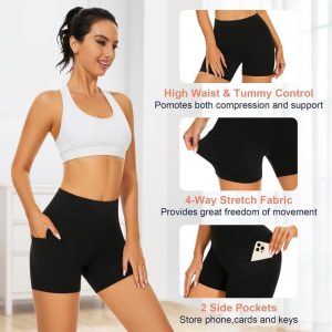 SIMIYA Biker Shorts Women with Pockets High Waist Tummy Control Workout Shorts for Yoga Gym Fitness Running Cycling