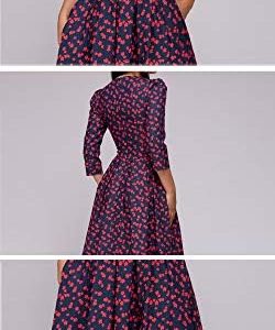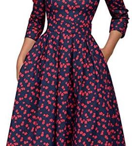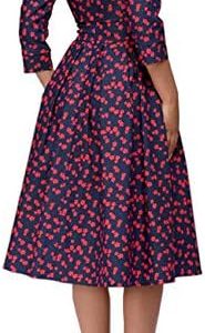 Simple Flavor Women’s Floral Vintage Dress Elegant Midi Evening Dress 3/4 Sleeves