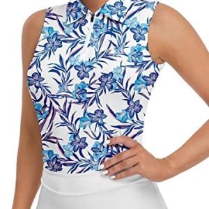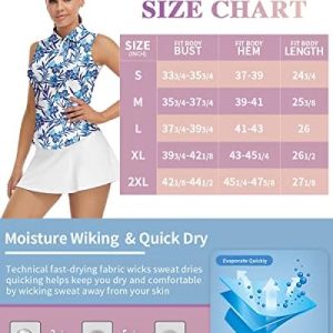 Soneven Womens Sleeveless Golf Shirt Printed Polo Tennis shirts Moisture Wicking Golf Tank Top
