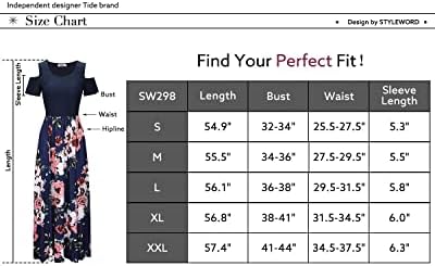 STYLEWORD Womens Summer Dresses Trendy 2024 Cold Shoulder Casual Floral Spring Long Maxi Beach Dress Wedding Guest