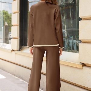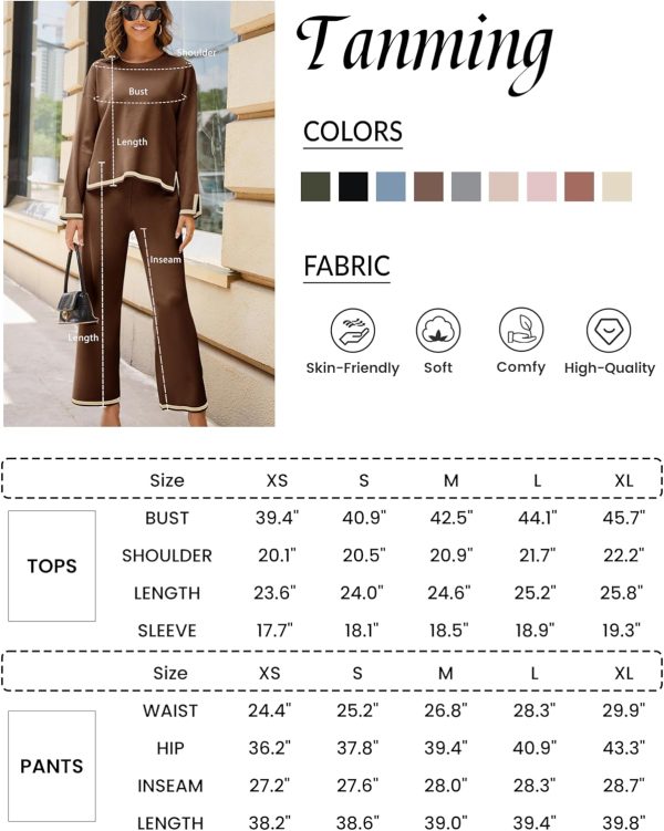 Tanming Women’s 2 Piece Outfits Long Sleeve Knit Sweater Top Wide Leg Pants Lounge Sets Tracksuits