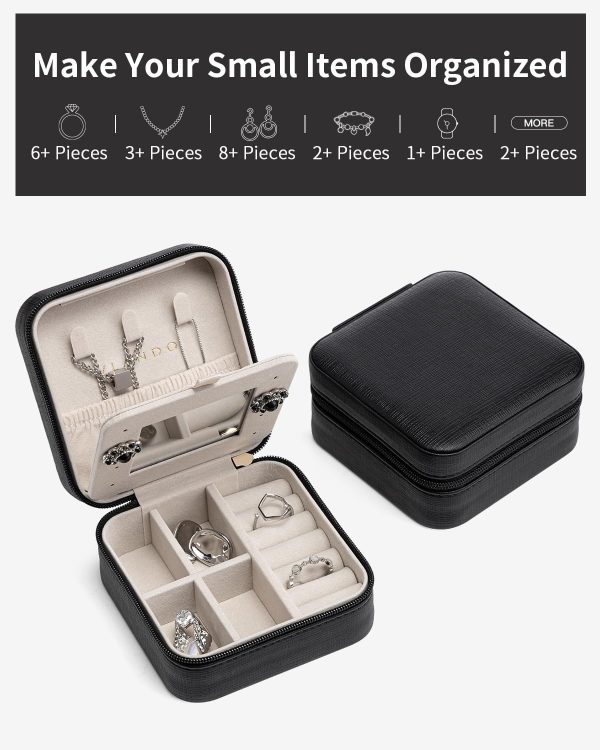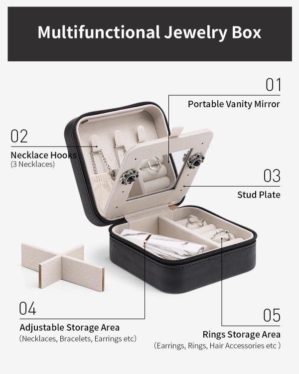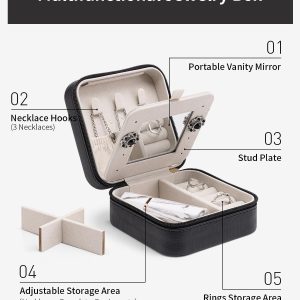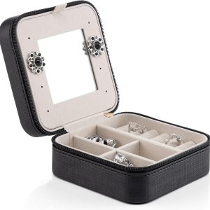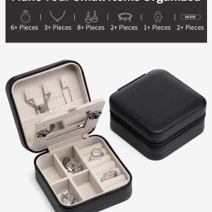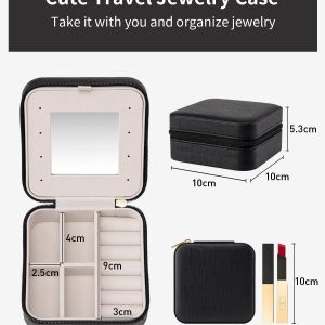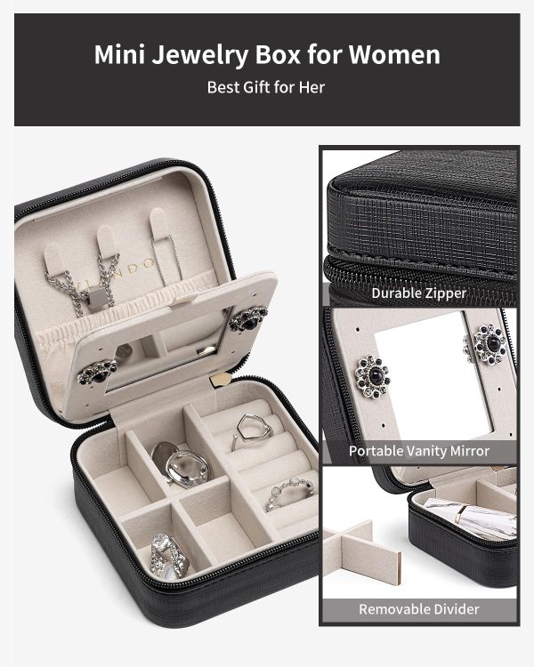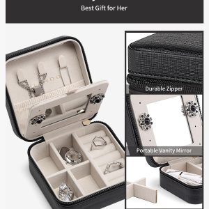 Vlando Travel Jewelry Case With Mirror,Small Portable Jewelry Box,Jewelry Organizer for Rings Earrings Necklaces Display Storage,Gifts for Girls Women,Travel Essentials,Mother’s Day Gift,Black