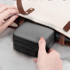 Ideal for travel. It is a reasonable size to fit in your bag. Although it is small, it has two pockets on both sides in which you can store more jewelry than expected.