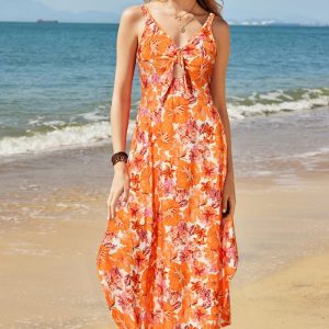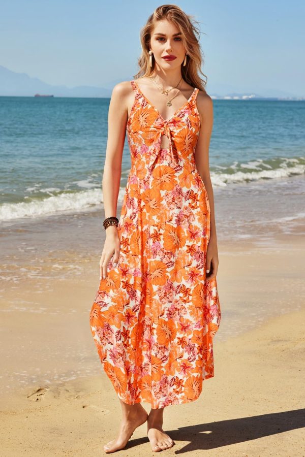 VOTEPRETTY Womens 2025 Trendy Summer Dress Casual V Neck Sleeveless Split Beach Sundress Vacation Outfit
