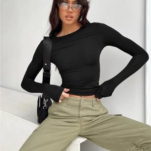 wkwmrpet Long Sleeve Shirt Women Basics Y2K Clothing Gym Clothes Crop Tops Slim Fitting Going Out Tops