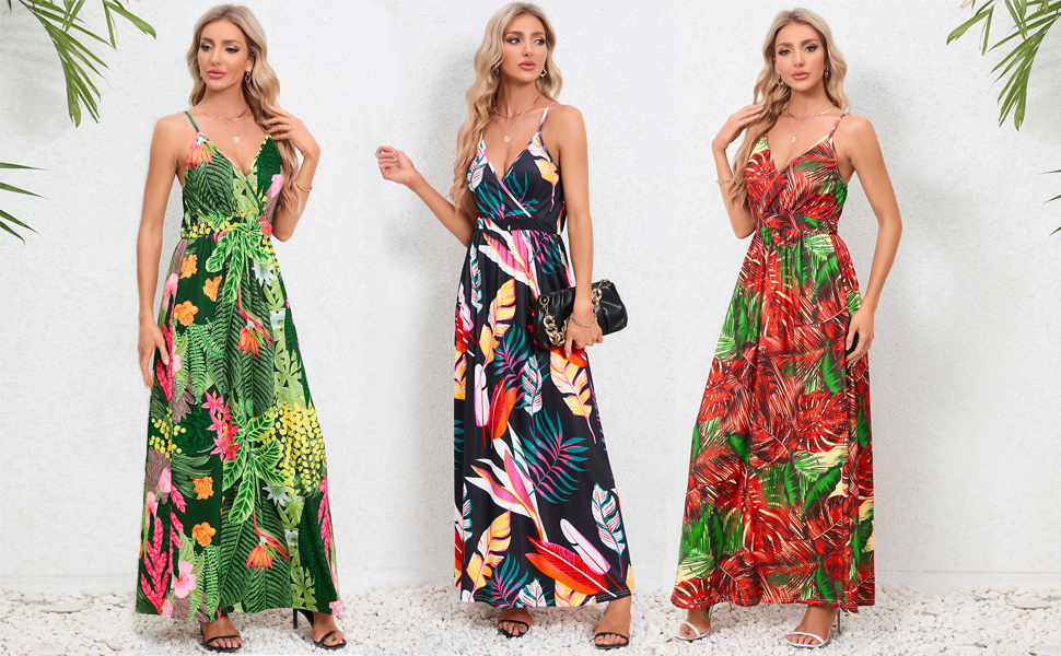 High quality and lightweight fabric make you feel good and comfortable.Long dresses with floral print skirt.It’s so easy to dress up or down with jewelry and shoes.This long dress features a flattering elastic waist, refined elegance.Material: Polyester, Spandex FabricGender: Women, Ladies, GirlStyle: Fashion, Casual, SexyPattern: Floral PrintedNeck: V NeckSleeves: SleevelessBack: backlessLength: Maxi DressSeason: Spring, Summer, fallWashing Care: It’s washing by hand or machine with cold water.