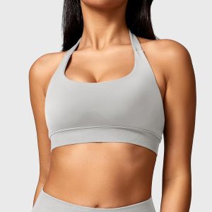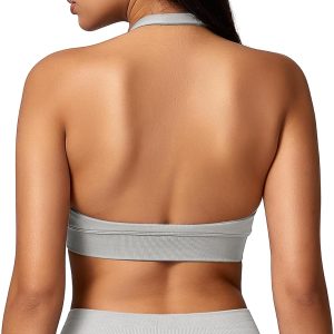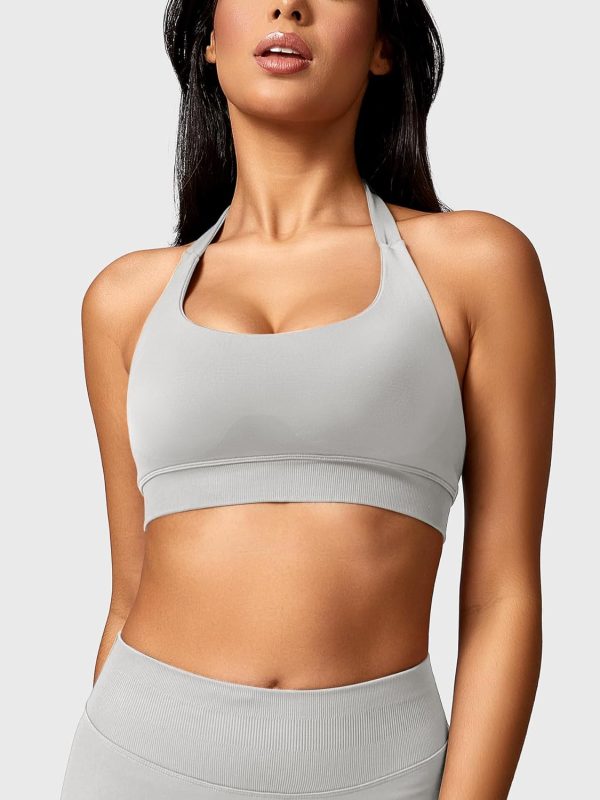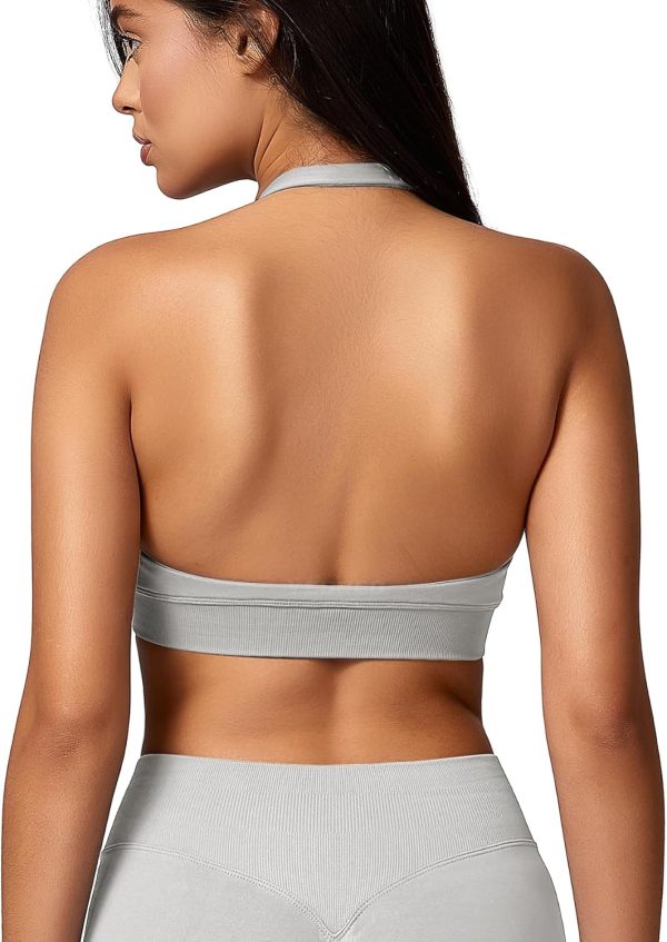 YEOREO SoftHue Women Halter Sports Bra Workout Seamless Padded Basic Bra Open Back Yoga Gym Crop Top