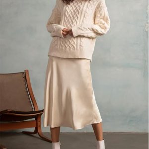 Womens Work Skirts Silk High Waist Skirt Elegant Stain Skirts