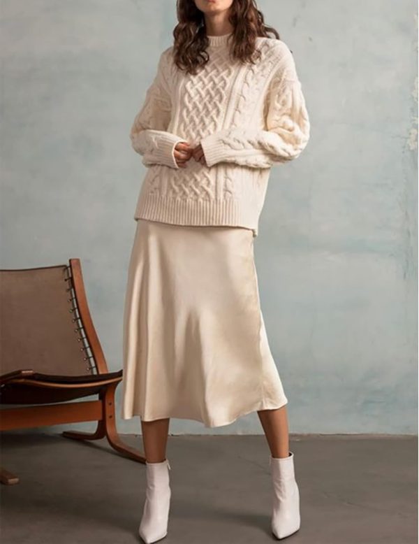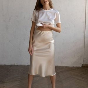 womens silk satin midi skirt high waist midi length summer satin skirt party